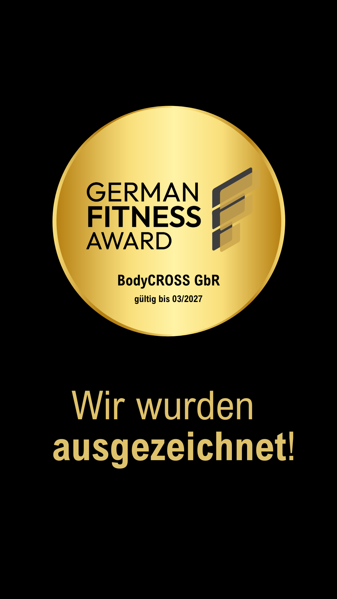 BodyCROSS® wurde mit dem renommierten „GERMAN FITNESS AWARD“ ausgezeichnet. Der Preis wird nur an Fachleute vergeben, die sich durch besondere Qualität, stetige Weiterbildung und innovative Arbeit in der Branche auszeichnen.